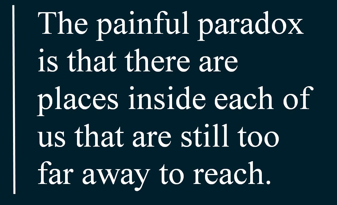 “It’s not about who we are or what we bring.” This was her theme, if not her mantra. It wasn’t about ability, or muscle, or nervous system. It wasn’t about flesh; not Barry’s, not even his father’s, for that matter. It wasn’t about reaching up in futility to an unreachable father. It was – and is – about a God who made us, and who knows the places within us that we alone dare not touch. This is a God who sees those places clearly, strides into them boldly, and seeks to quiet them completely.